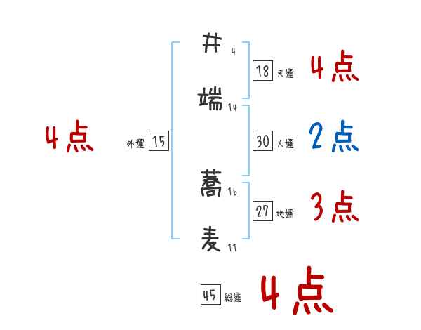 外運![]() | 井端蕎麦さんの外運は15画の4つ星!人徳があり出世する。順調に物事を進め円満な人生。 生活面を象徴する運勢です。外部から受ける影響力を表し、結婚運、家庭運や職場、環境への順応性を表します。 |