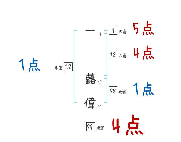 一蕗偉さんの画数の鑑定結果