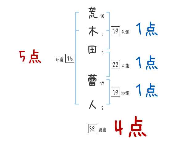 荒木田蕾人さんの画数の鑑定結果