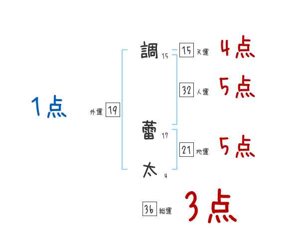 調蕾太さんの画数の鑑定結果