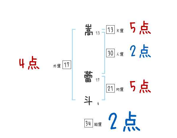 嵩蕾斗さんの画数の鑑定結果