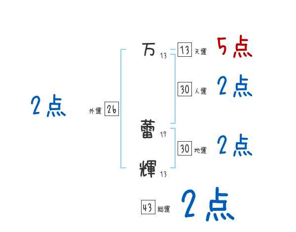 万蕾輝さんの画数の鑑定結果
