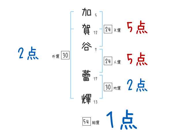 加賀谷蕾輝さんの画数の鑑定結果