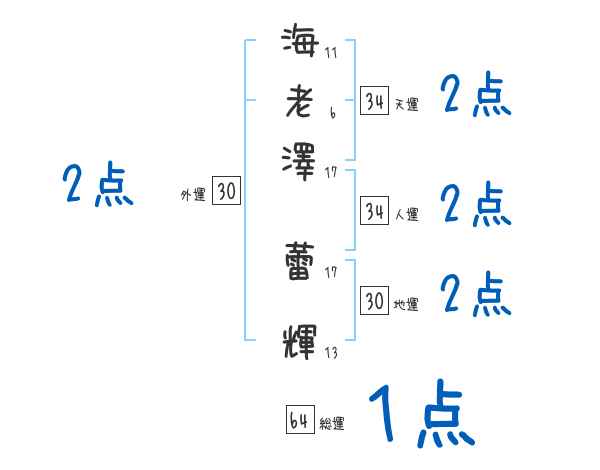 海老澤蕾輝さんの画数の鑑定結果