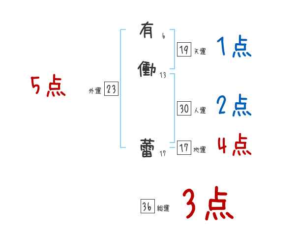 有働蕾さんの画数の鑑定結果