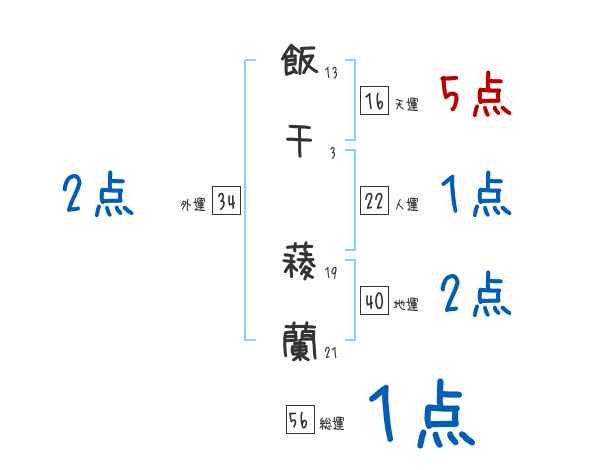 飯干薐蘭さんの画数の鑑定結果