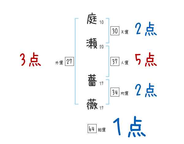 庭瀬薔薇さんの画数の鑑定結果