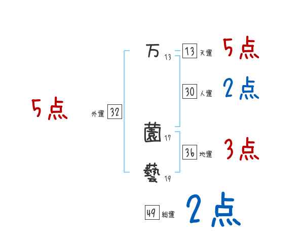 万薗藝さんの画数の鑑定結果