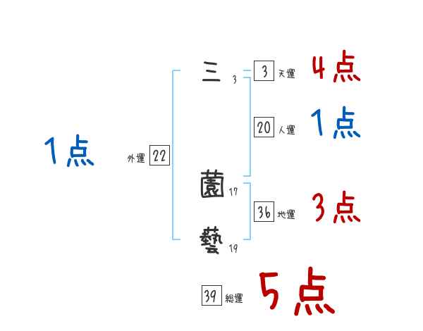 三薗藝さんの画数の鑑定結果