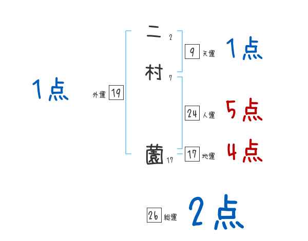 二村薗さんの画数の鑑定結果