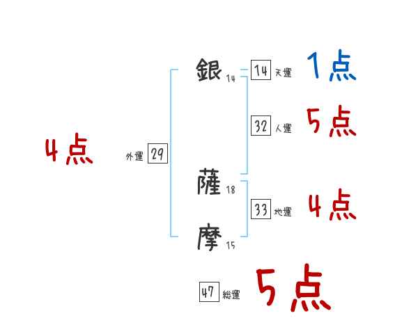 銀薩摩さんの画数の鑑定結果