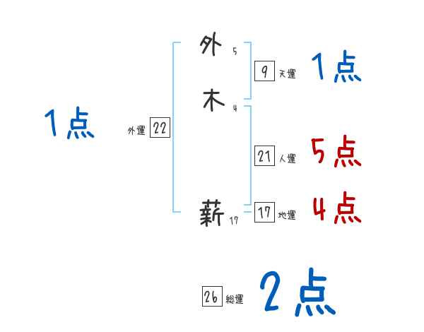 天運![]() | 外木薪さんの天運は9画の1つ星!消極的で才能を発揮することが苦手なことも。周りの意見に耳を傾けましょう。 家系が持つ宿命的な運勢を表します。祖先から受け継いだ苗字ですので自分の力が及びません。家柄を象徴します。 |