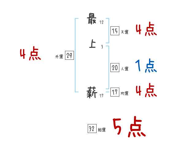 最上薪さんの画数の鑑定結果