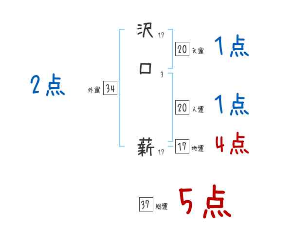 総運![]() | 沢口薪さんの総運は37画の5つ星!努力家で順応性に優れる。現実的な考え方ができ忠実に物事をこなす。 あなたの人生を表す1番重要な運勢です。生涯を通じて影響する総合運となり、主に50歳以降の晩年期に影響を及ぼします。 |