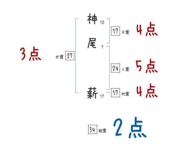 神尾薪さんの画数の鑑定結果