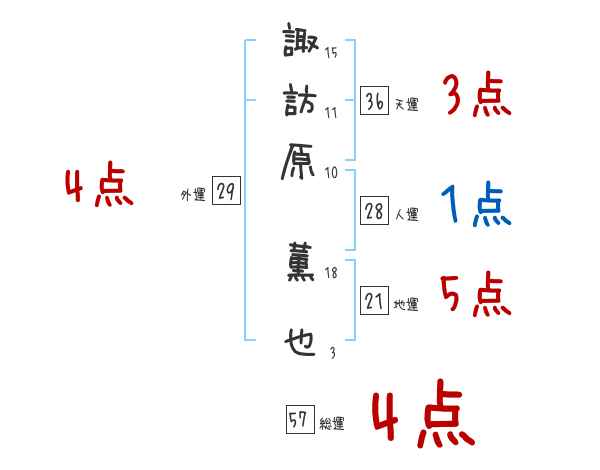 諏訪原薫也さんの画数の鑑定結果