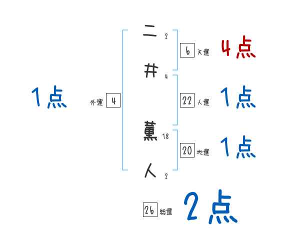 二井薫人さんの画数の鑑定結果