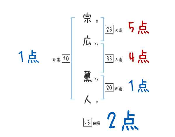 宗広薫人さんの画数の鑑定結果