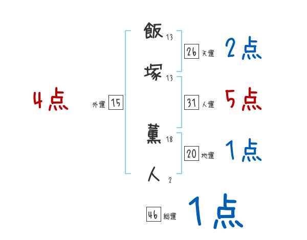 飯塚薫人さんの画数の鑑定結果
