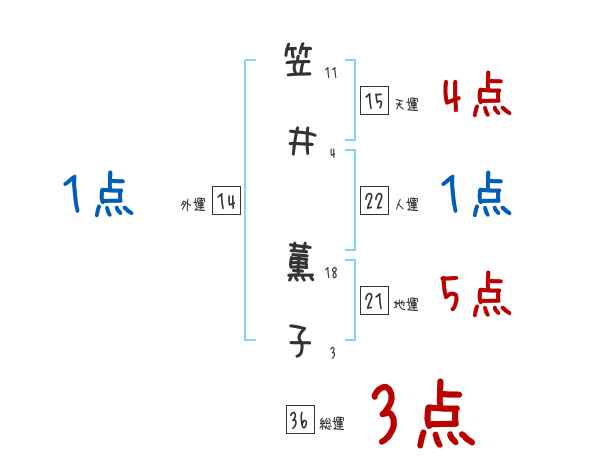 笠井薫子さんの画数の鑑定結果