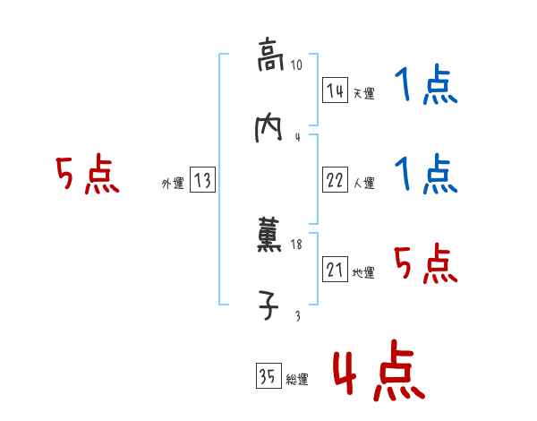 高内薫子さんの画数の鑑定結果