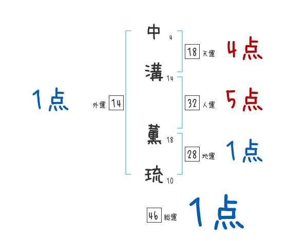 人運![]() | 中溝薫琉さんの人運は32画の5つ星!柔軟性があり成功する。チャンスが多く金運が良い。 性格や才能などを表す2番目に重要な運勢です。人間関係や協調性、社会的な成功に影響します。主に20歳から50歳ぐらいまでの中年期の運勢を表します。 |
