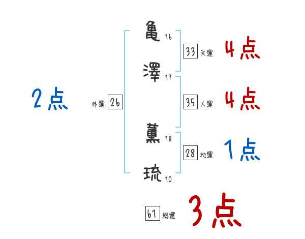 亀澤薫琉さんの画数の鑑定結果
