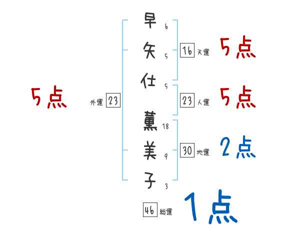 早矢仕薫美子さんの画数の鑑定結果