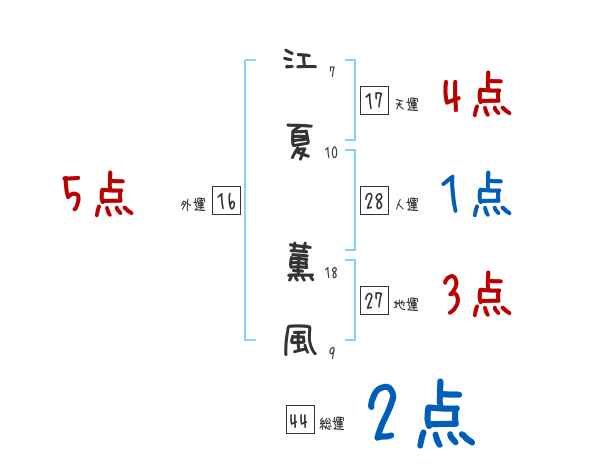 江夏薫風さんの画数の鑑定結果