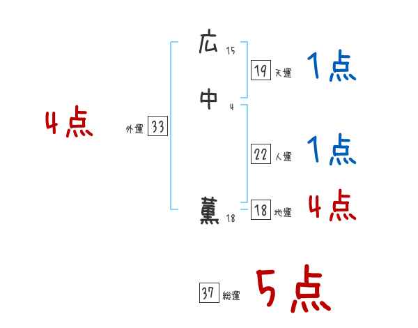広中薫さんの画数の鑑定結果