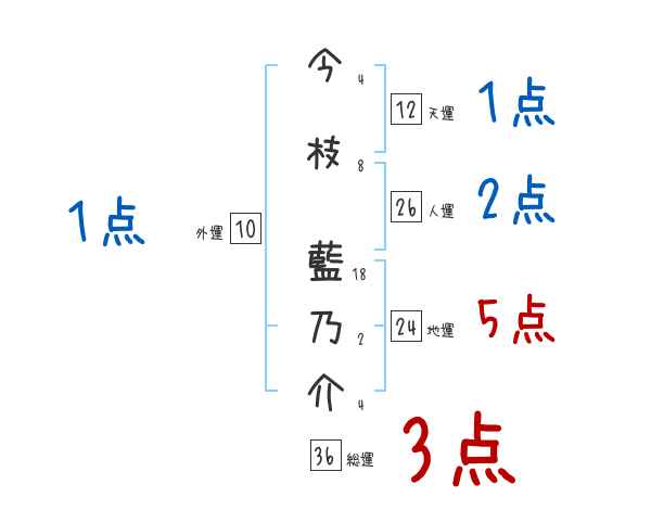 総運![]() | 今枝藍乃介さんの総運は36画の3つ星!先見性が豊かです。多少神経質で苦労することも。 あなたの人生を表す1番重要な運勢です。生涯を通じて影響する総合運となり、主に50歳以降の晩年期に影響を及ぼします。 |