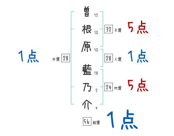 天運![]() | 曽根原藍乃介さんの天運は32画の5つ星!柔軟性があり成功する。チャンスが多く金運が良い。 家系が持つ宿命的な運勢を表します。祖先から受け継いだ苗字ですので自分の力が及びません。家柄を象徴します。 |