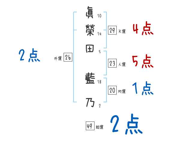 眞榮田藍乃さんの画数の鑑定結果
