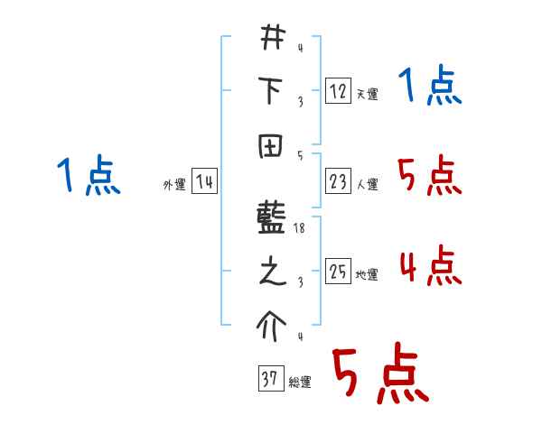 人運![]() | 井下田藍之介さんの人運は23画の5つ星!想像力に優れ活力がある。一代で成功し名誉を手に入れる。 性格や才能などを表す2番目に重要な運勢です。人間関係や協調性、社会的な成功に影響します。主に20歳から50歳ぐらいまでの中年期の運勢を表します。 |