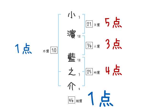 小濵藍之介さんの画数の鑑定結果