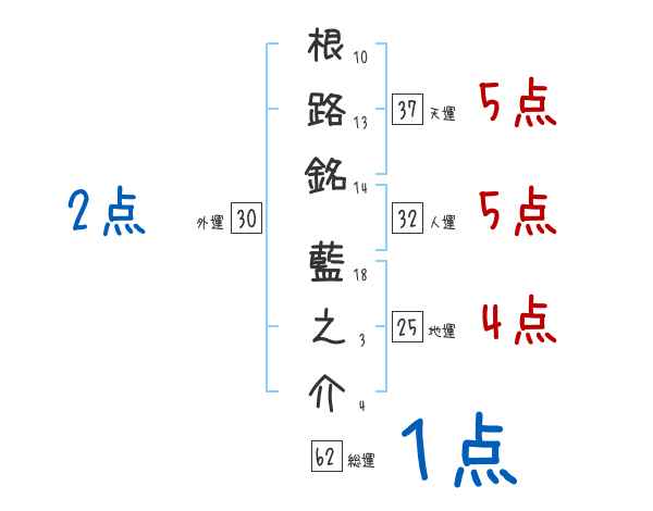 根路銘藍之介さんの画数の鑑定結果