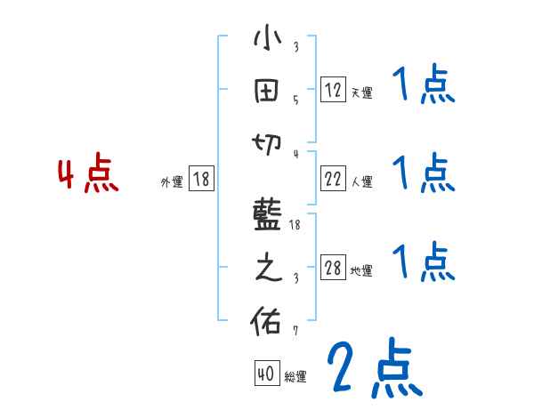 小田切藍之佑さんの画数の鑑定結果
