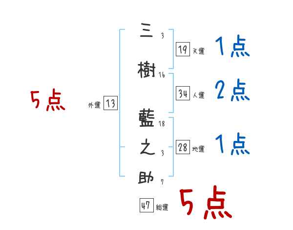 総運![]() | 三樹藍之助さんの総運は47画の5つ星!実力が開花し発展する円満な人生。財に恵まれる。 あなたの人生を表す1番重要な運勢です。生涯を通じて影響する総合運となり、主に50歳以降の晩年期に影響を及ぼします。 |