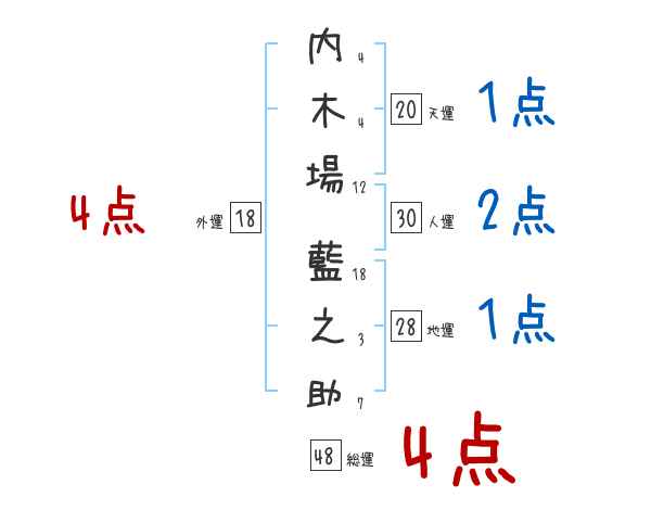 総運![]() | 内木場藍之助さんの総運は48画の4つ星!賢明な性格で人望が厚い。指導力があり多くの人に尊敬される。 あなたの人生を表す1番重要な運勢です。生涯を通じて影響する総合運となり、主に50歳以降の晩年期に影響を及ぼします。 |