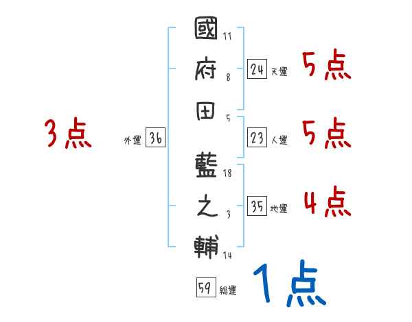 國府田藍之輔さんの画数の鑑定結果
