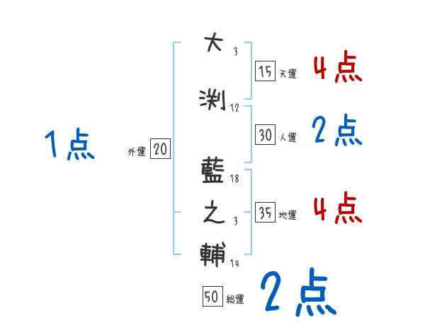 天運![]() | 大渕藍之輔さんの天運は15画の4つ星!人徳があり出世する。順調に物事を進め円満な人生。 家系が持つ宿命的な運勢を表します。祖先から受け継いだ苗字ですので自分の力が及びません。家柄を象徴します。 |