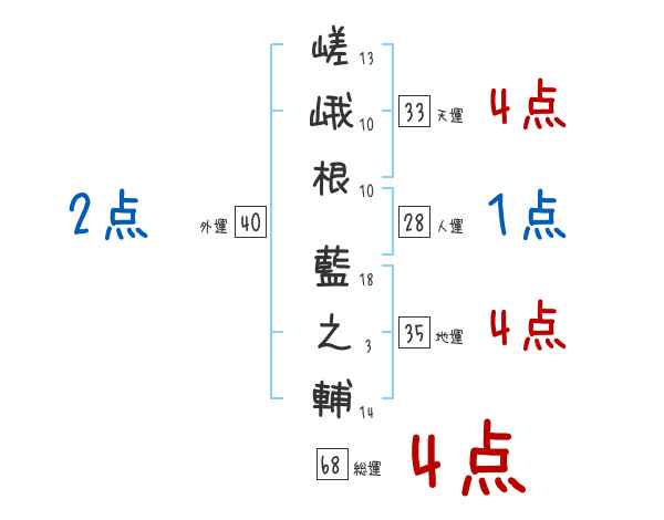 嵯峨根藍之輔さんの画数の鑑定結果