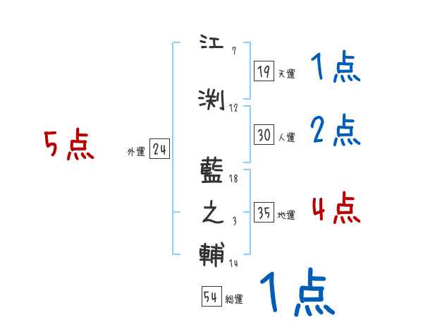 外運![]() | 江渕藍之輔さんの外運は24画の5つ星!家庭運が良く順調な人生。金運にも恵まれる。 生活面を象徴する運勢です。外部から受ける影響力を表し、結婚運、家庭運や職場、環境への順応性を表します。 |