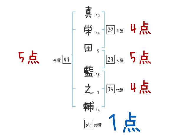 真栄田藍之輔さんの画数の鑑定結果