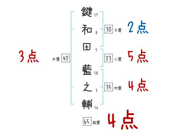 鍵和田藍之輔さんの画数の鑑定結果