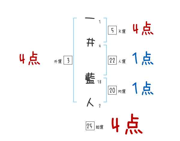 一井藍人さんの画数の鑑定結果