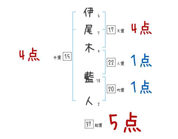 伊尾木藍人さんの画数の鑑定結果