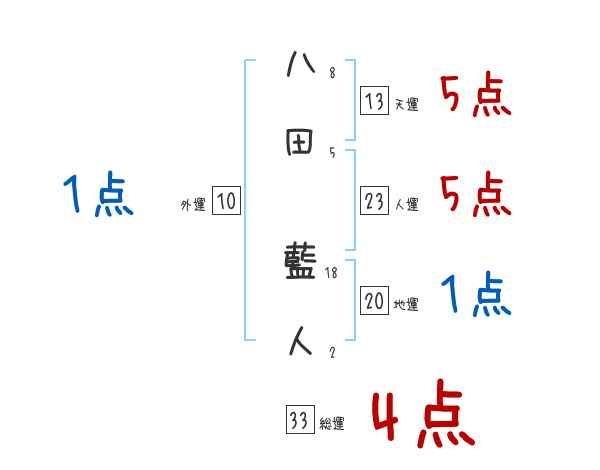 八田藍人さんの画数の鑑定結果