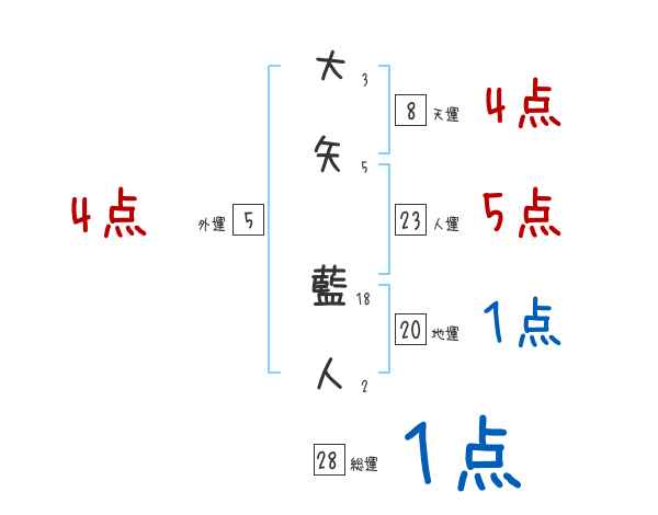 天運![]() | 大矢藍人さんの天運は8画の4つ星!勤勉家。根気強く努力し成功する。忍耐力がある。 家系が持つ宿命的な運勢を表します。祖先から受け継いだ苗字ですので自分の力が及びません。家柄を象徴します。 |