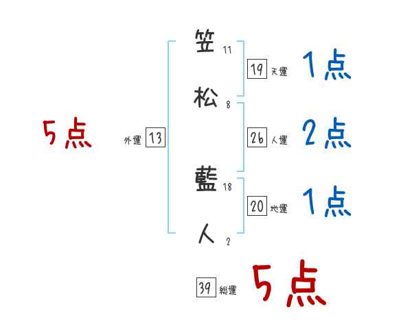笠松藍人さんの画数の鑑定結果